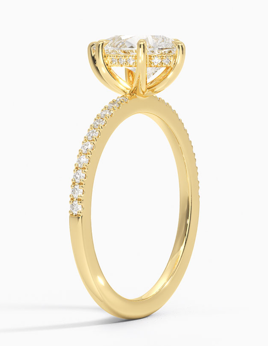 18K Yellow Gold Petite Demi Moissanite Diamond Engagement Ring